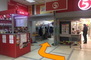Проход вдоль универсама «Пятёрочка», рядом с эскалатором